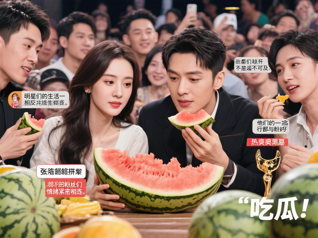 吃瓜八卦指的是人们在围观新闻、话题时保持旁观、乐于讨论的一种心态。这种现象为何普遍存在?首先,娱乐圈里的绯闻事件往往涉及情感纠葛、利益纷争等话题,与大众日常生活中的情绪共鸣高度重合。“明星们的生活并不是遥不可及,相反,他们的一言一行都与粉丝们的情绪紧密相连。”当张某某的分手事件、某奖的颁奖黑幕成为热点话题时,观众的讨论往往自带戏剧化的解读,甚至引发二次创作,进一步拉近了“吃瓜”文化与大众的关系。